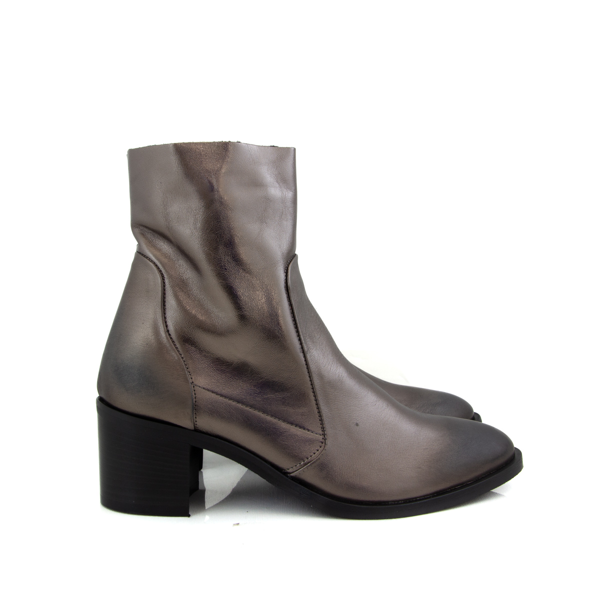 Their minimalist silhouette, paired with the bold metallic finish, makes the Capri Metalic Laminato Boots a versatile statement piece. Perfect for those who love timeless style with a modern twist, these boots are sure to attract attention.