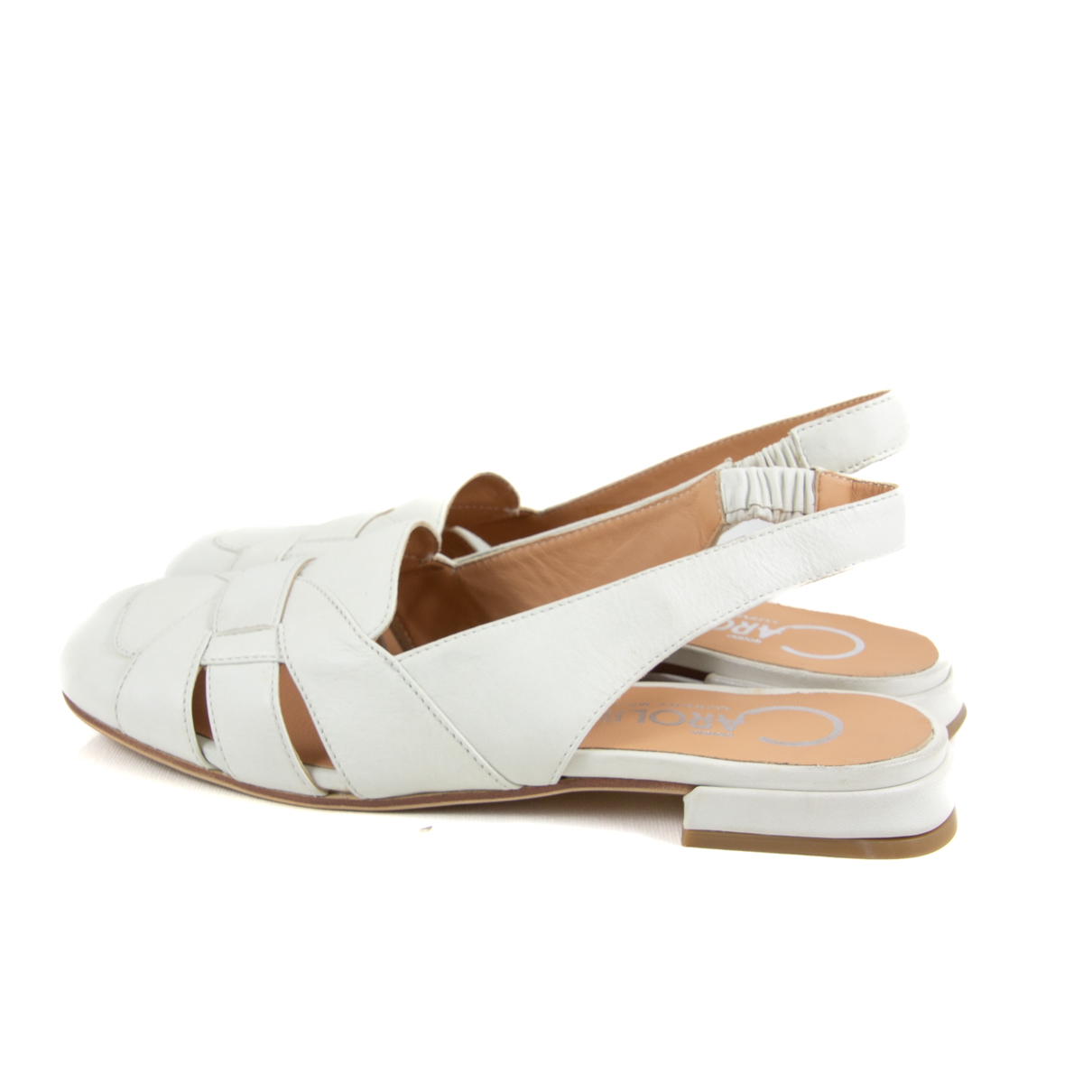 The Donna Carolina Elsa Nelly White sandal blends timeless design with warm-weather ease. Crafted in smooth white leather, the upper showcases an intricate interwoven pattern that adds elegance and texture. Soft, breathable leather lines the interior, keeping your feet cool and comfortable from morning strolls to evening outings. A 15 mm heel offers a subtle lift, while the lightweight Microlite sole makes every step feel light and effortless.