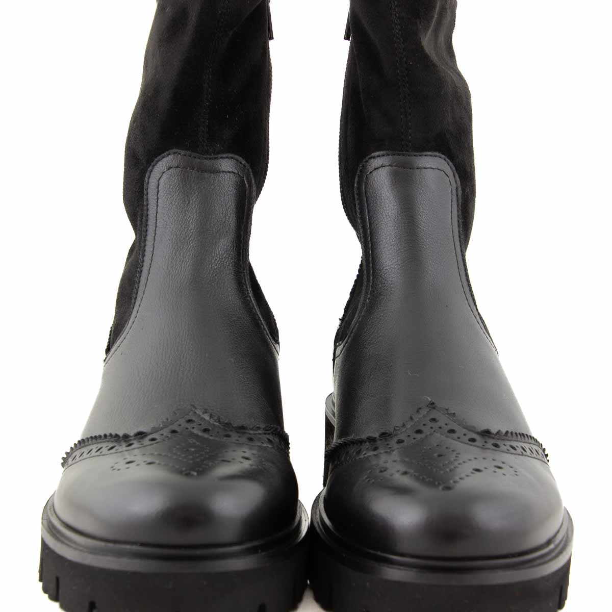 Inside, the suede sock lining enhances comfort, providing a soft and smooth feel against the foot. This lining makes the Faye Nero shoes perfect for extended wear, offering a luxurious, comfortable fit throughout the day.