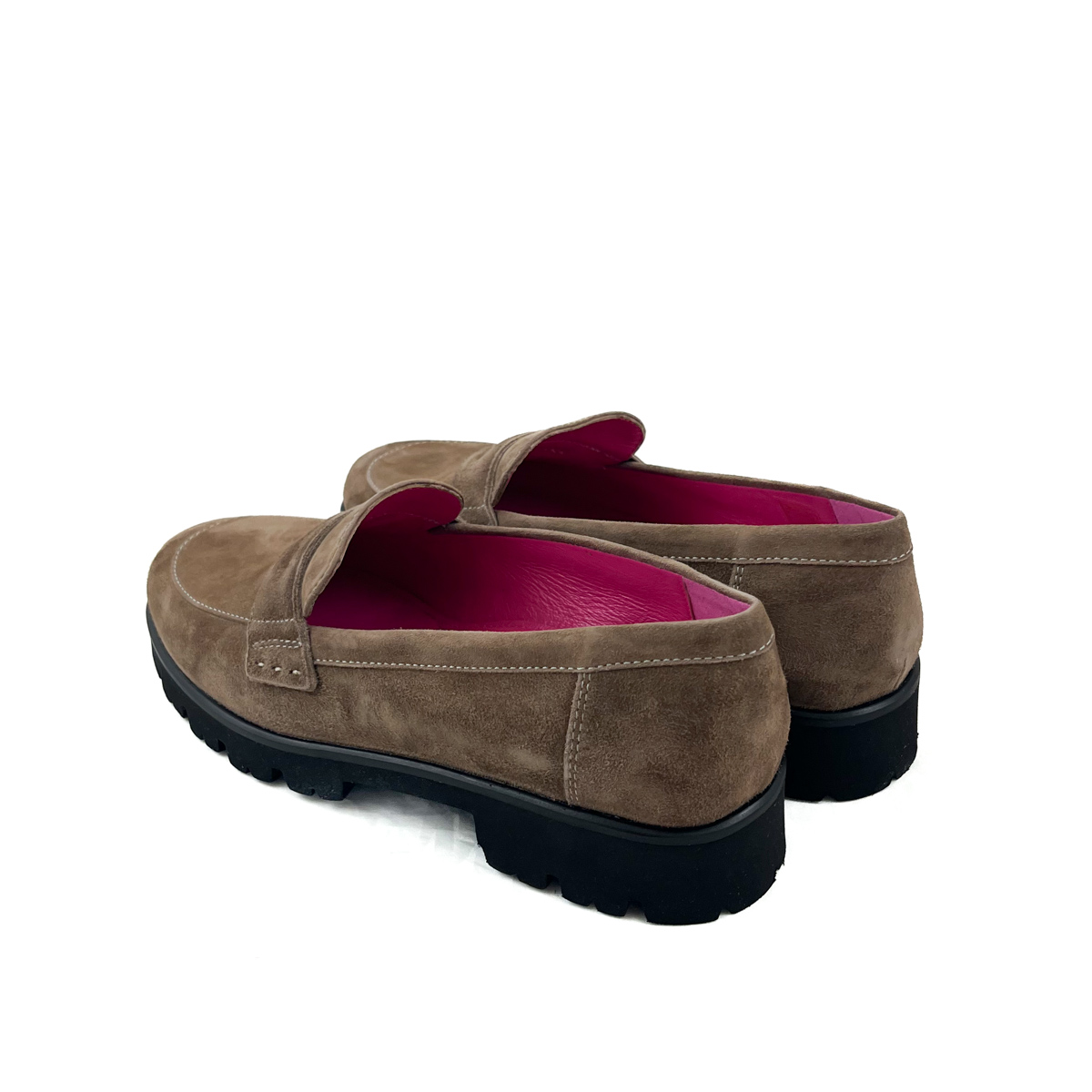 One standout feature of the Gwenda Taupe Suede loafer is its platform sole. This sole provides a subtle lift while adding a contemporary edge. Moreover, the rugged tread pattern ensures stability and grip, introducing a unique contrast to the shoe’s classic upper. This thoughtful balance of elegance and practicality makes it suitable for everyday wear without compromising on style.