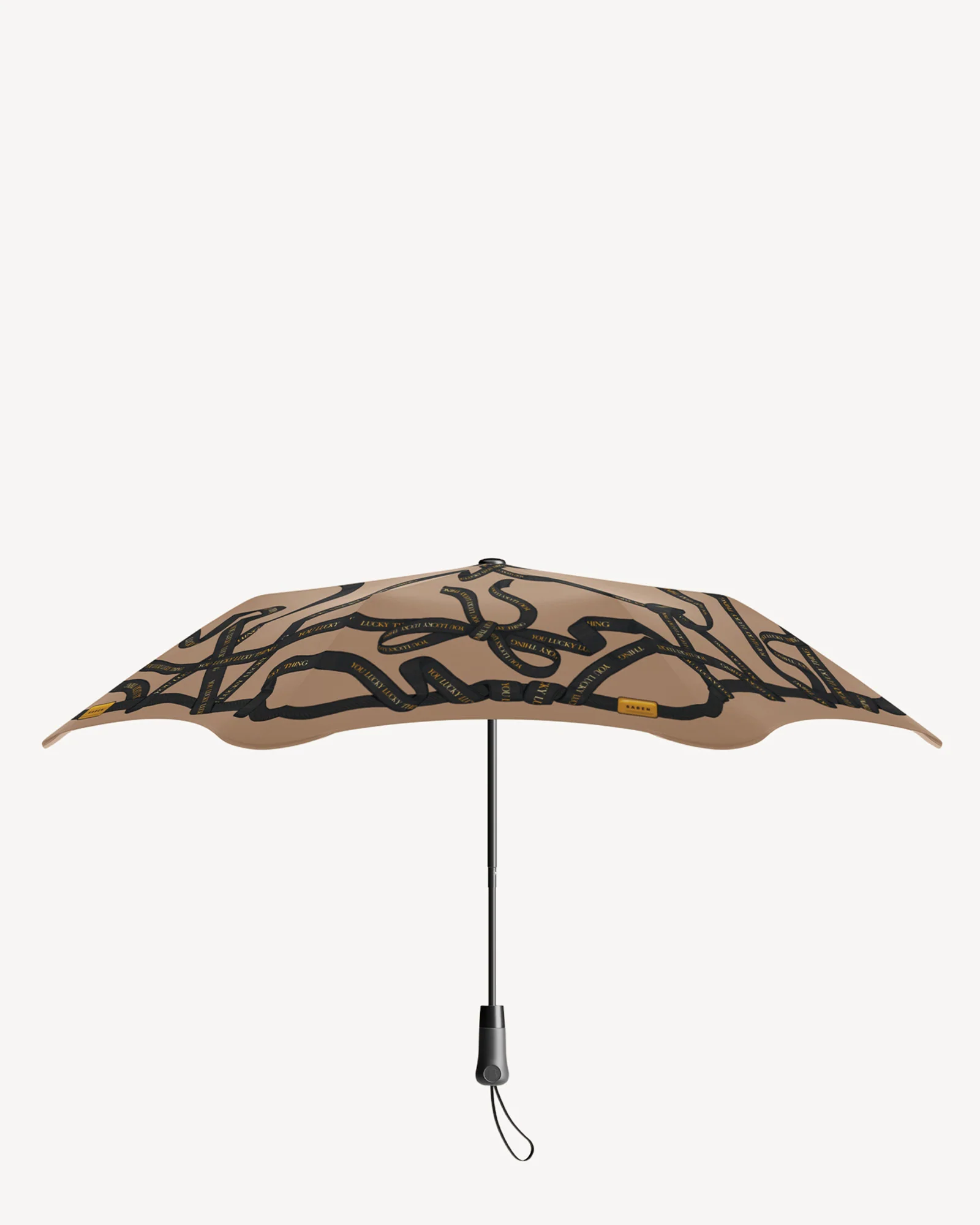 Saben and Blunt join forces once again to deliver a stylish, functional umbrella designed to brighten grey days. The limited-edition design features Saben’s iconic “You Lucky Lucky Thing” tagline in a playful ribbon print, blending personality with everyday practicality.