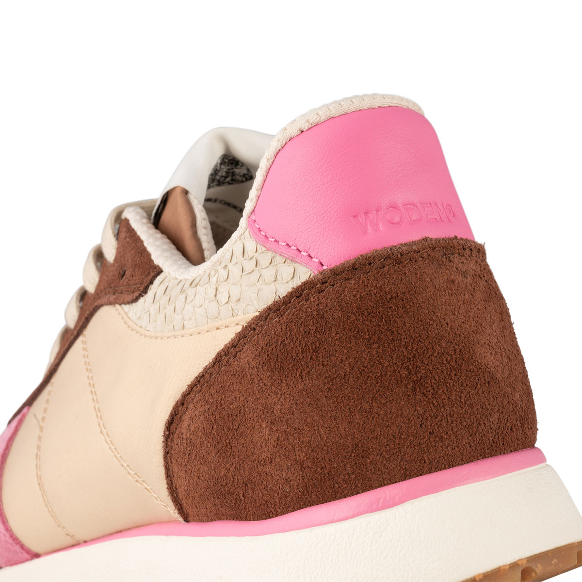 The Woden Ronja Sepia Multi is a perfect blend of sporty style, sustainability, and everyday comfort. Designed with eye-catching colour-blocked details, this sneaker is crafted from a combination of premium leather and recycled textile. Additionally, the fish leather accents on the heel add a unique and stylish touch. Notably, all leather used in its construction comes from LWG-certified production, ensuring responsible and eco-conscious manufacturing.